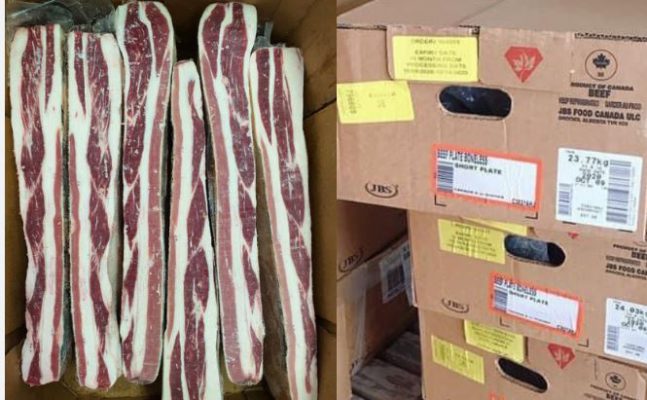 Ba chỉ bò Canada là một miếng thịt được cắt từ bụng bò, ngay dưới phần xương sườn, nó thường là loại thịt mỏng, xen kẽ cả nạc và mỡ, nhờ đó mà miếng thịt rất mềm và thơm ngon . Ba chỉ bò JBS là sản phẩm nhập khẩu từ Canada. Được lựa chọn từ những giống bò chất lượng nên phần thịt ba chỉ được lóc ra ngoài có tỉ lệ nạc và mỡ hài hòa không bị quá nhiều mỡ.
