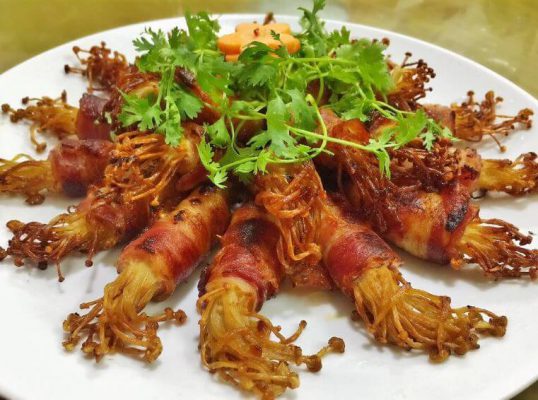 1.Ba chỉ bò cuộn nấm kim châm nướng