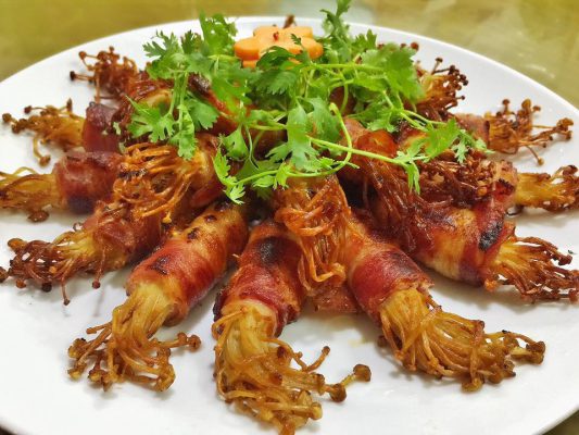 2.Ba chỉ bò cuộn nấm kim châm nướng