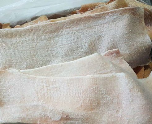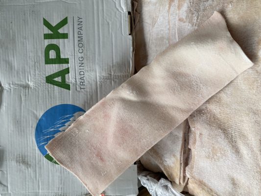 Da lưng heo nhập khẩu là sản phẩm đã trải qua quá trình cấp đông. Vì vậy được loại bỏ sự phát triển của vi sinh vật gây hại, từ đó kéo dài thời hạn sử dụng.Các da heo đông lạnh được ưa chuộng nhất là da heo nhập khẩu từ Nga, loại ưa chuộng nhất là da lưng hiệu VLMK, Miratorg, APK… Các loại da heo nhập từ Đức thì trên tấm da dính rất nhiều mộc khó tẩy nên không dùng phổ biến như da heo Nga.