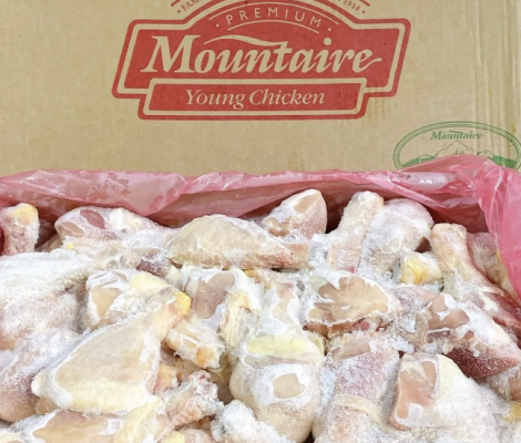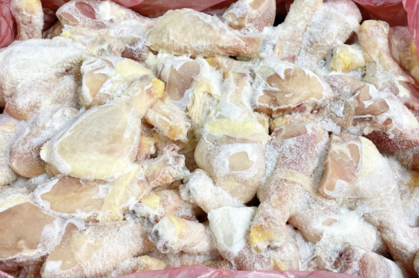 •Gà nhập khẩu đông lạnh bao gồm đùi tỏi gà, đùi góc tư gà, má đùi gà, cánh gà nguyên, cánh gà giữa, và gà dai nguyên con.