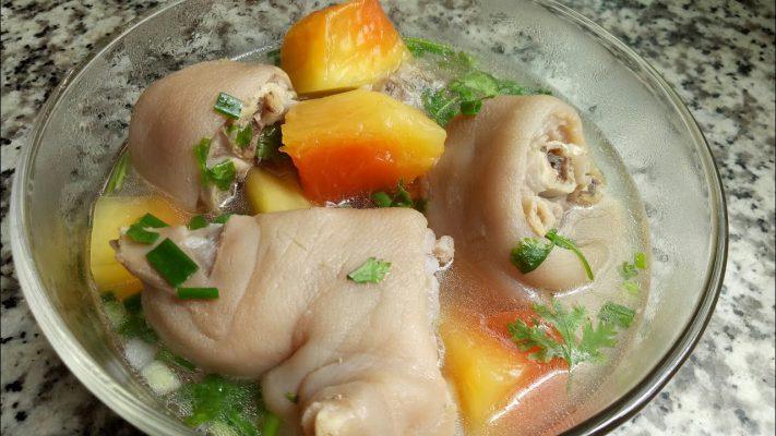 Chân giò heo có mùi vị thơm ngon, giá trị dinh dưỡng cao. Đặc biệt món chân giò heo ăn vào những ngày trời lạnh rất bổ dưỡng, tốt cho sức khỏe. Móng giò heo giàu dinh dưỡng có tác dụng bổ huyết, nhiều sắt và vitamin A, B. Ăn móng giò còn giảm suy nhược thần kinh, giúp ngủ ngon. Ngoài ra, chất keo trong móng giò còn giúp các tế bào da không bị khô nhăn nhờ đó da luôn căng bóng.
