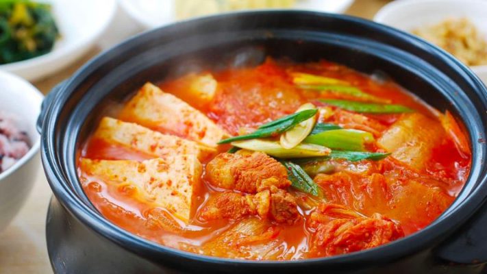 Món canh kim chi ba chỉ thịt bò có vị chua chua, ngọt ngọt vô cùng kích thích. Thịt bò mềm dai, đậu hũ thì ngọt mát khi ăn cùng kim chi và nấm kim châm sẽ mang đến một trải nghiệm vị giác tuyệt vời.