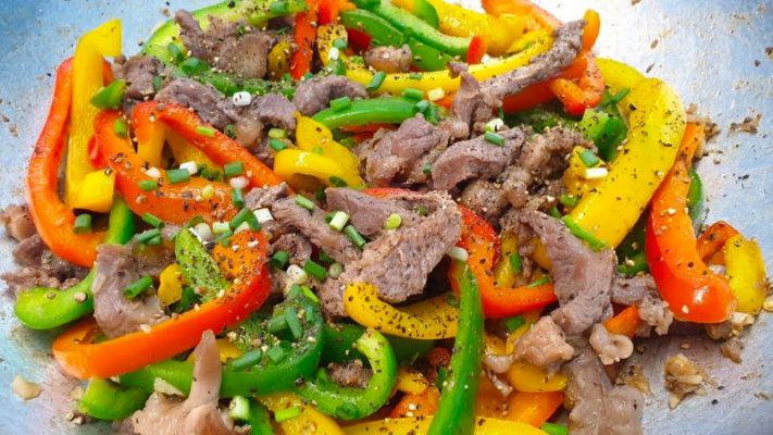 3.Ba chỉ bò xào ớt chuông