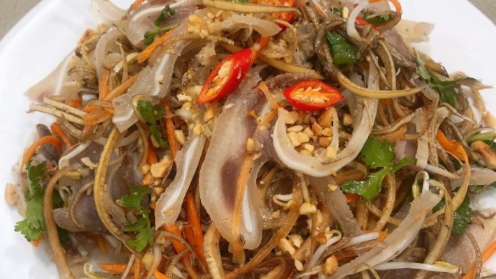 Say mê ngay từ ánh nhìn đầu tiên với màu sắc bắt mắt từ món gỏi tai heo hoa chuối thơm lừng hấp dẫn. Tai heo giòn sần sật, hoa chuối và cà rốt giòn ngọt, tươi mát thấm vị nước trộn chua cay xen lẫn 1 chút bùi bùi của đậu phộng rang, ăn kèm với bánh phồng tôm hoặc với cơm trắng đều rất hoàn hảo.