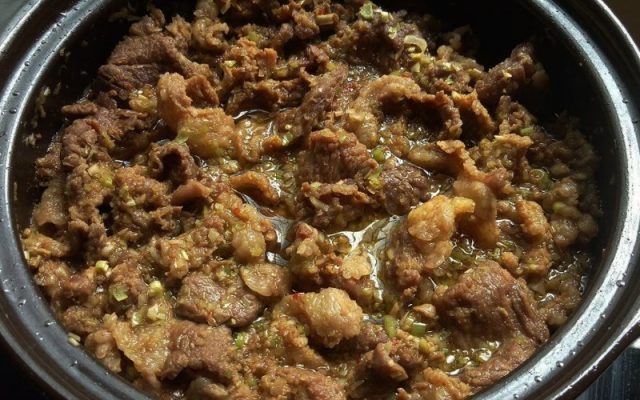 Để bữa cơm thêm đậm đà, nạm gầu trâu kho sả ớt chắc chắn sẽ khiến nồi cơm nhà bạn phải vơi nhanh đó! Nạm gầu được cắt lát mỏng vừa, kho cùng sả và ớt cho đến khi dậy mùi thơm, thịt trâu săn và mềm. Nước kho có vị đậm đà, chan lên cơm nóng, gắp thêm một miếng thịt nạm ăn cùng thì còn gì bằng nữa.