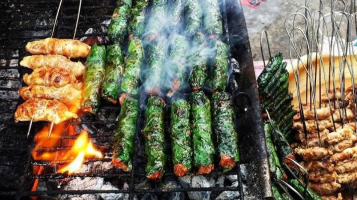 1.Thịt nạm gầu trâu cuốn lá lốt nướng